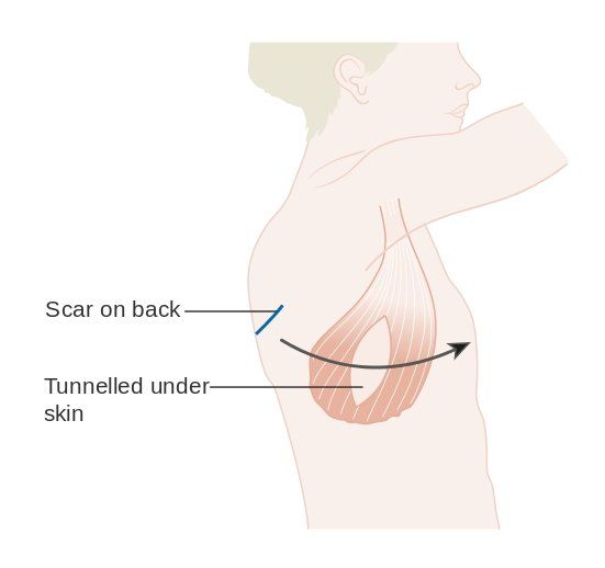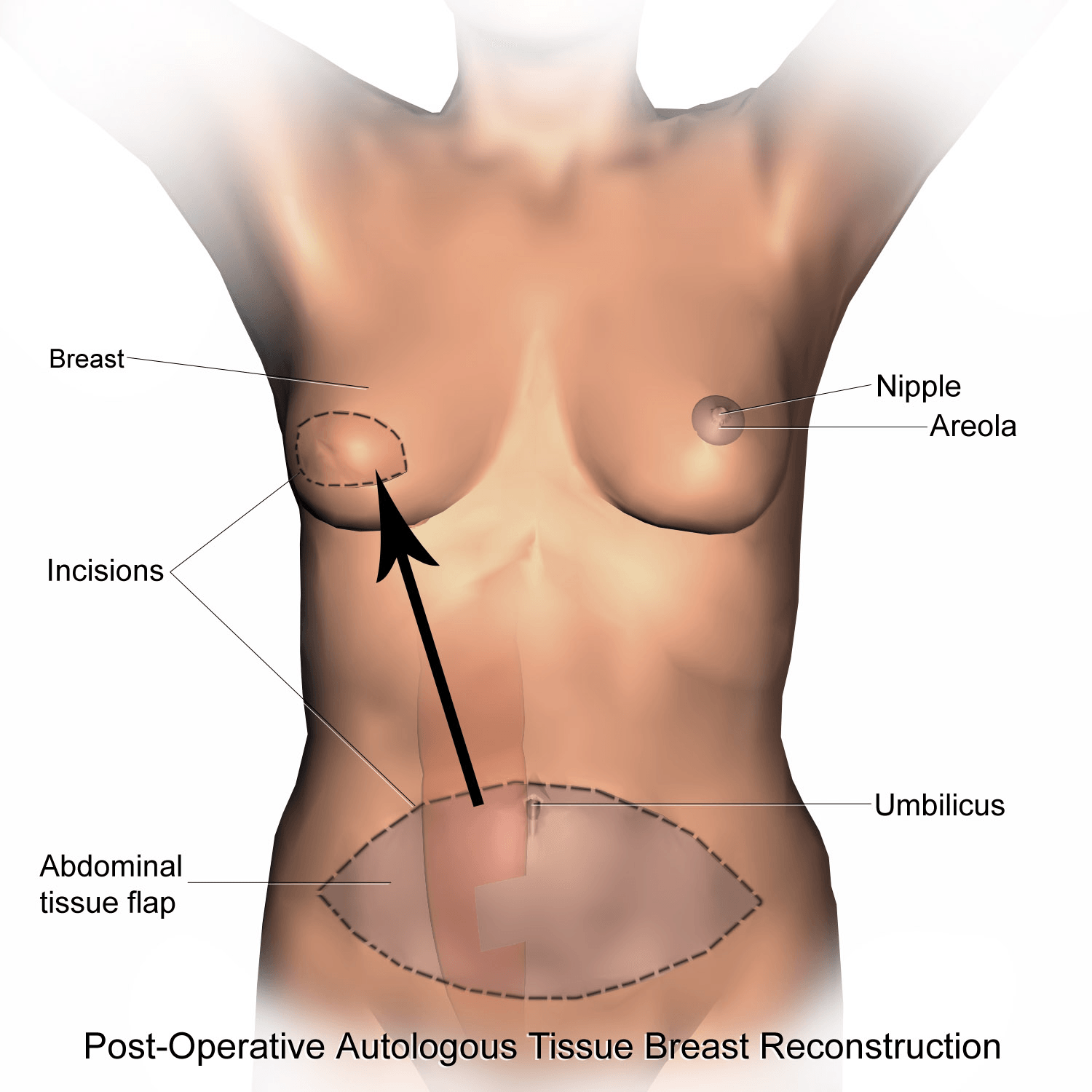 En el caso de los colgajos libres, el colgajo se desconecta de su suministro de sangre original y se trasplanta al tórax realizando nuevas conexiones de los pequeños vasos que nutren al colgajo con vasos de la región torácica. Posteriormente se remodela para recrear la mama.